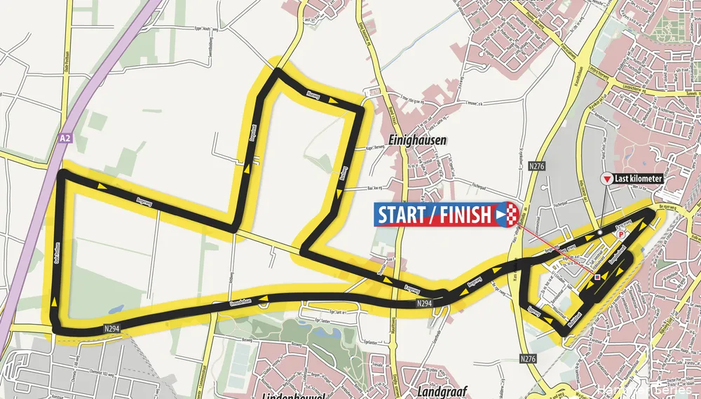 De renners rijden daarin drie keer een 14,9 kilometer lang parcours in de omgeving van Sittard-Geleen, met start, twee doorkomsten en finish op het Tom Dumoulin Bike Park.Klik voor een grotere weergave van het parcours op de routekaart boven dit bericht.