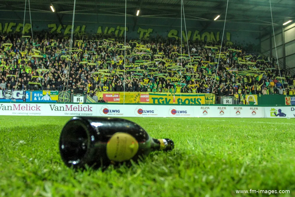 Maar halverwege het seizoen 2017-2018 - na een vierde plek in de eerste periode en de titel in de tweede periode - begon men zich stiekem, in gedachten, toch links en rechts af te vragen of de club in de nacompetitie een wondertje zou weten te realiseren. Die gedachten waren van korte duur, want de derde periode startte dramatisch met vier nederlagen op rij en het openbarsten van een lelijk abces. Fortuna Sittard kwam - met dank aan Sunday Oliseh - negatief in het nieuws. De flamboyante Nigeriaan werd op non-actief gesteld. Het op dat moment zwalkende elftal kwam onder de kundige hoede van het duo Claudio Braga en zijn van PSV overkomen assistent en oud-Fortunees Kevin Hofland. Het lukte hen om het tij te keren. Na twee gelijke spelen kwamen er weer overwinningen en keerde het plezier terug op het veld. Sinds het vertrek van Oliseh - veertien wedstrijden geleden - werd er geen enkele keer meer verloren. De kloof van zeven punten met N.E.C. werd dankzij Nijmeegs geklungel in slechts enkele wedstrijden gedicht. De apotheose volgde, ondanks enkele fikse tegenslagen in eerdere wedstrijden, zoals de zware blessures voor Djibril Dianessy en Jorrit Smeets, zaterdagavond in een uitverkocht stadion met een prima wedstrijd, vol beleving en inzet, gesteund door een bijzonder luidruchtig publiek.