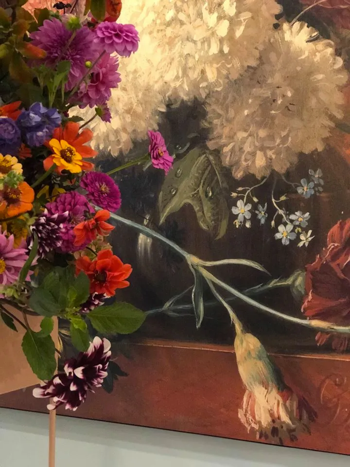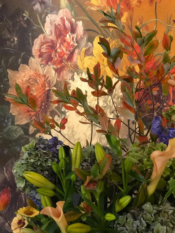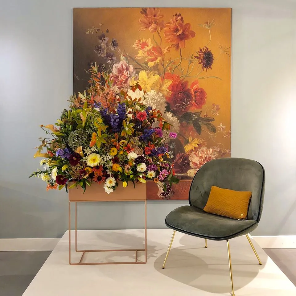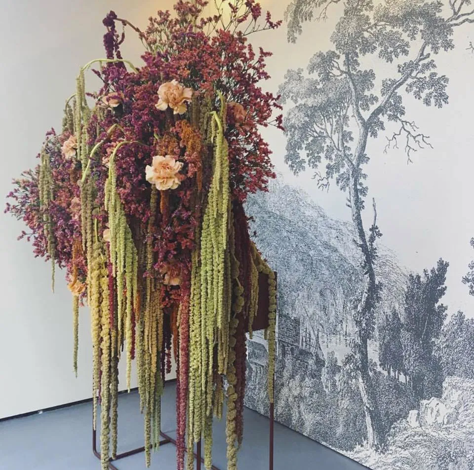 De installatie van Floral Design Studio BALT is te zien in combinatie met een schitterende Muurmeester met bloemen.