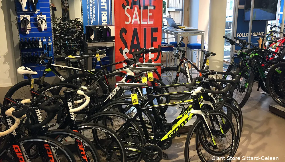 Vanaf vandaag - het is koopzondag van 12:00-17:00 uur - kunt u twee weken lang profiteren van extreem hoge kortingen op álle uitlopende modellen van afgelopen jaar én van speciaal voor u ingekochte modellen (stadsfietsen, E-Bikes, toerfietsen, racefietsen en mountainbikes) van Giant en Cortina.